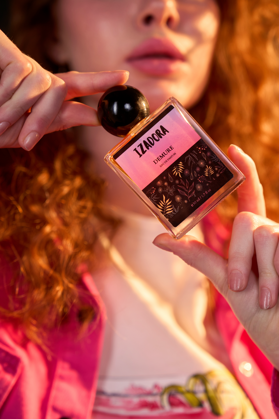 It is a fragrance for the woman who exudes elegance effortlessly—delicate yet confident, radiant yet mysterious. With its playful fruity opening, soft floral heart, and warm, sensual base, Demure is the perfect scent for those who captivate without needing to speak.